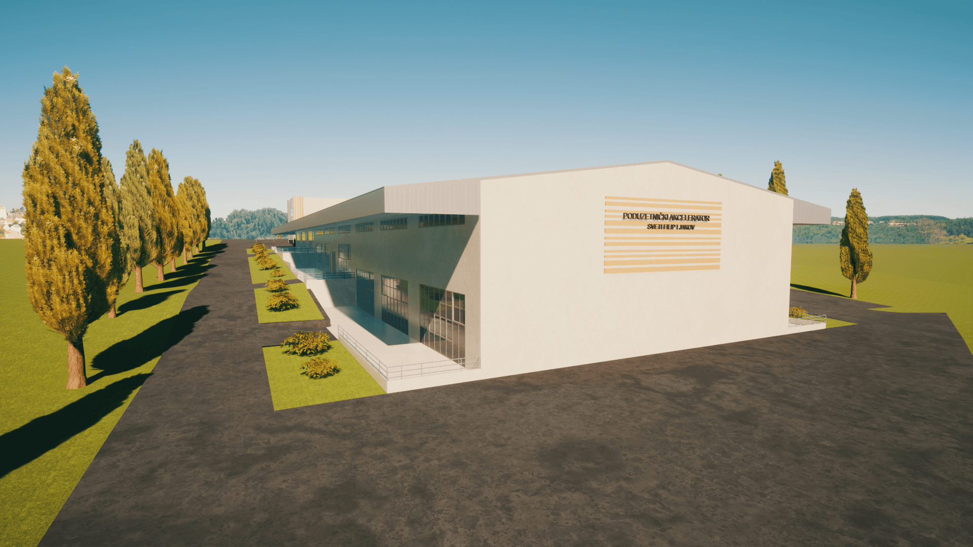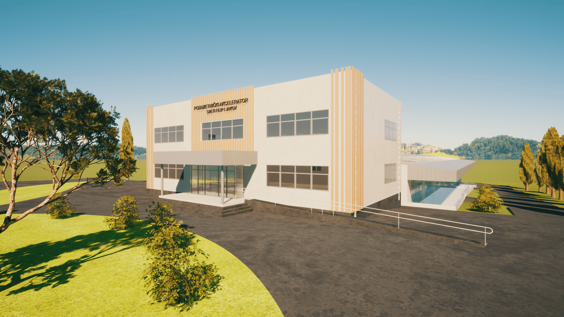 Poduzetnički akcelerator sastoji se od dvije slobodnostojeće građevine proizvodno poslovene i edukacijskog centra.