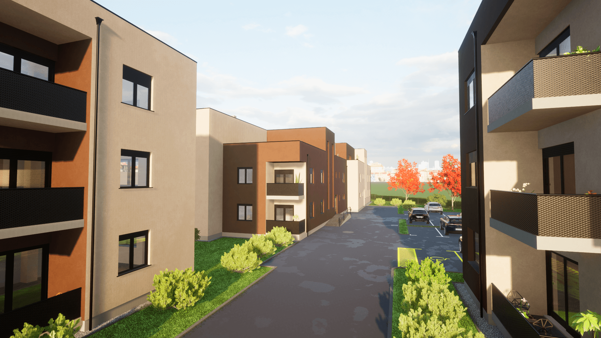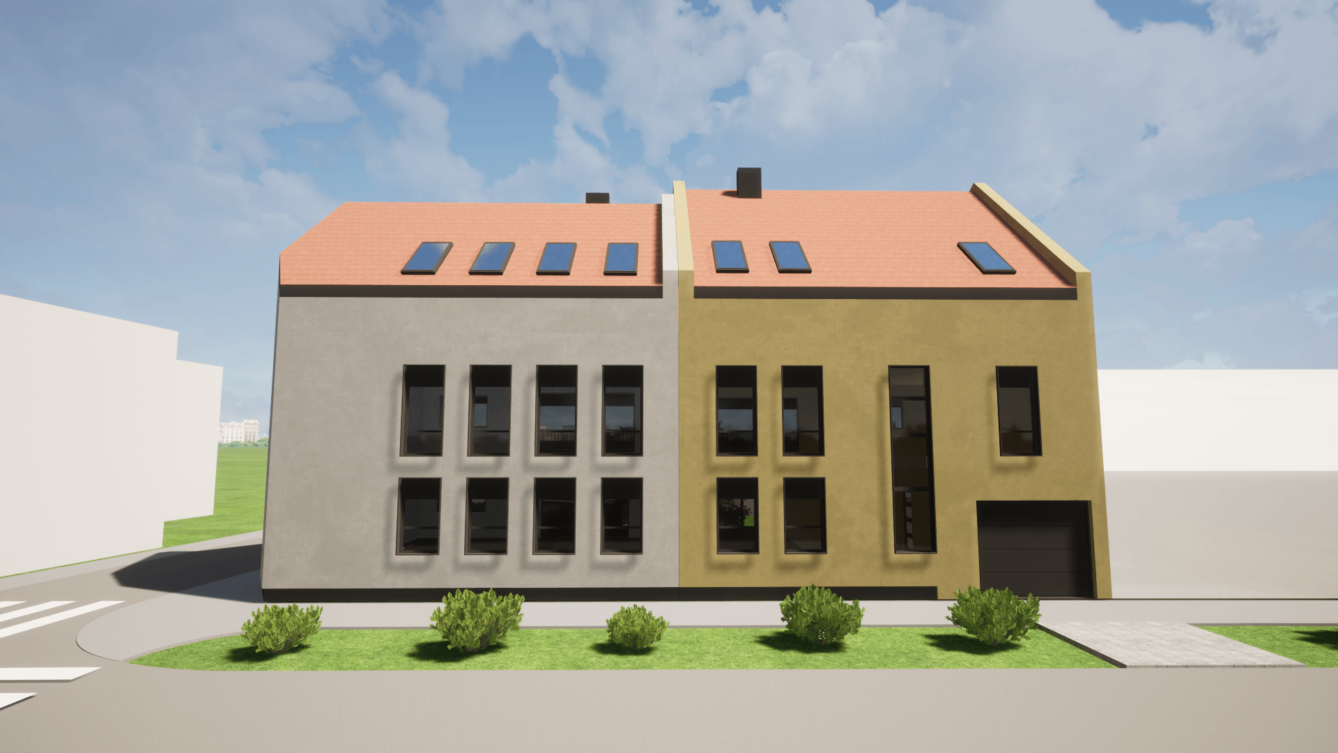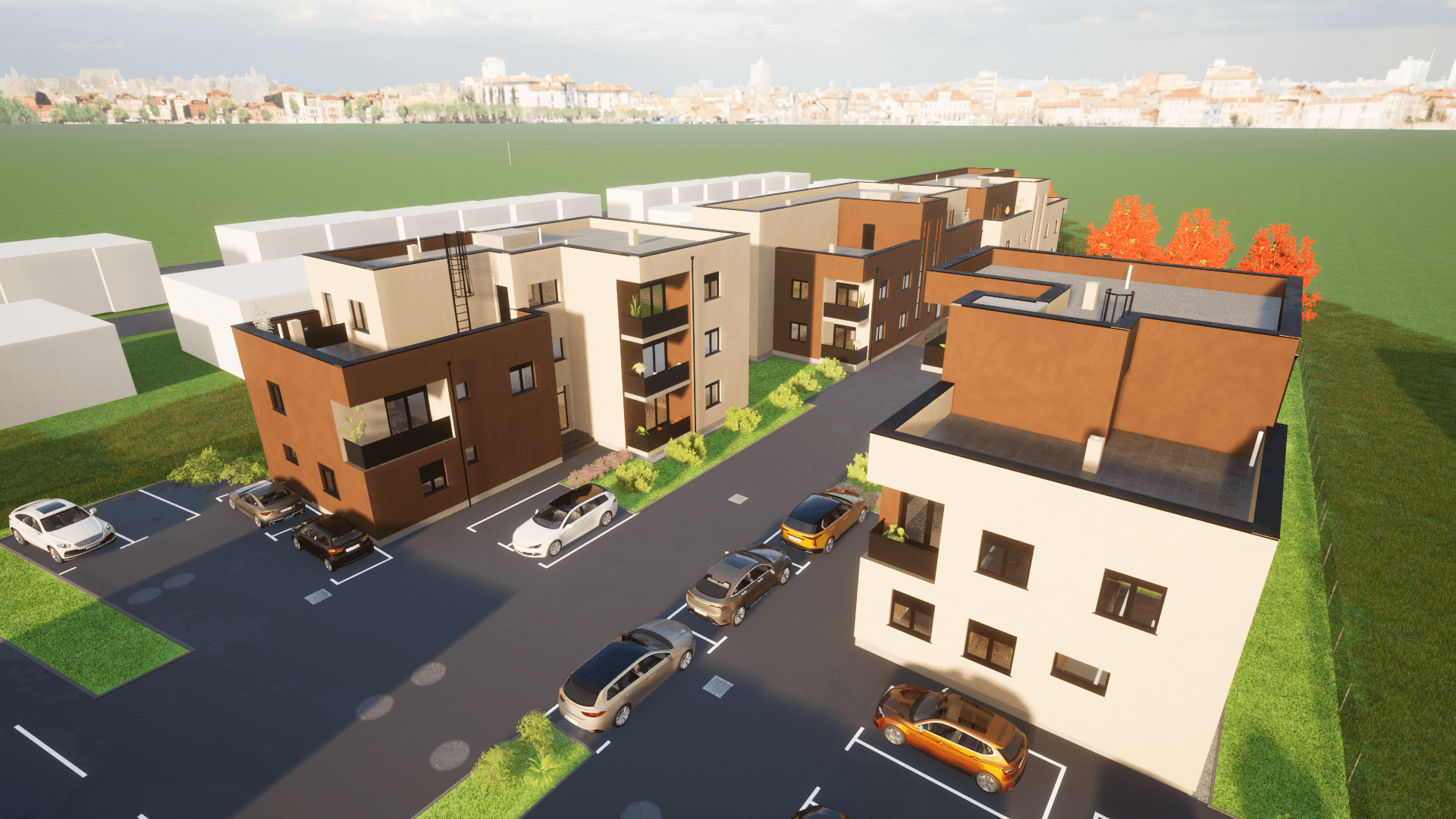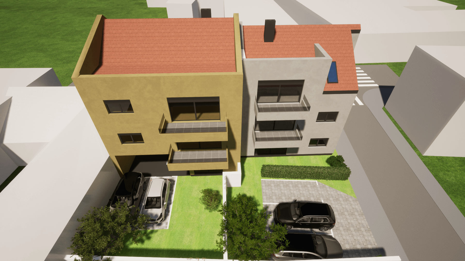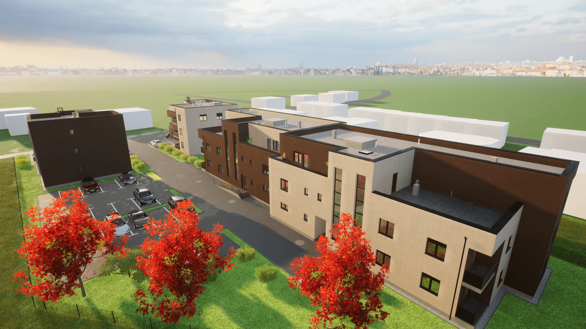 Dvije moderne stambene zgrade svaka zgrada s tri etaže i 6 stanova nudi funkcionalan raspored, privatnost i suvremeni dizajn. Prizemlje uključuje ulazni prostor i dva stana, dok se na gornjim katovima nalaze po dva stana. Krovna terasa pruža dodatni vanjski prostor za opuštanje i uživanje u pogledu.