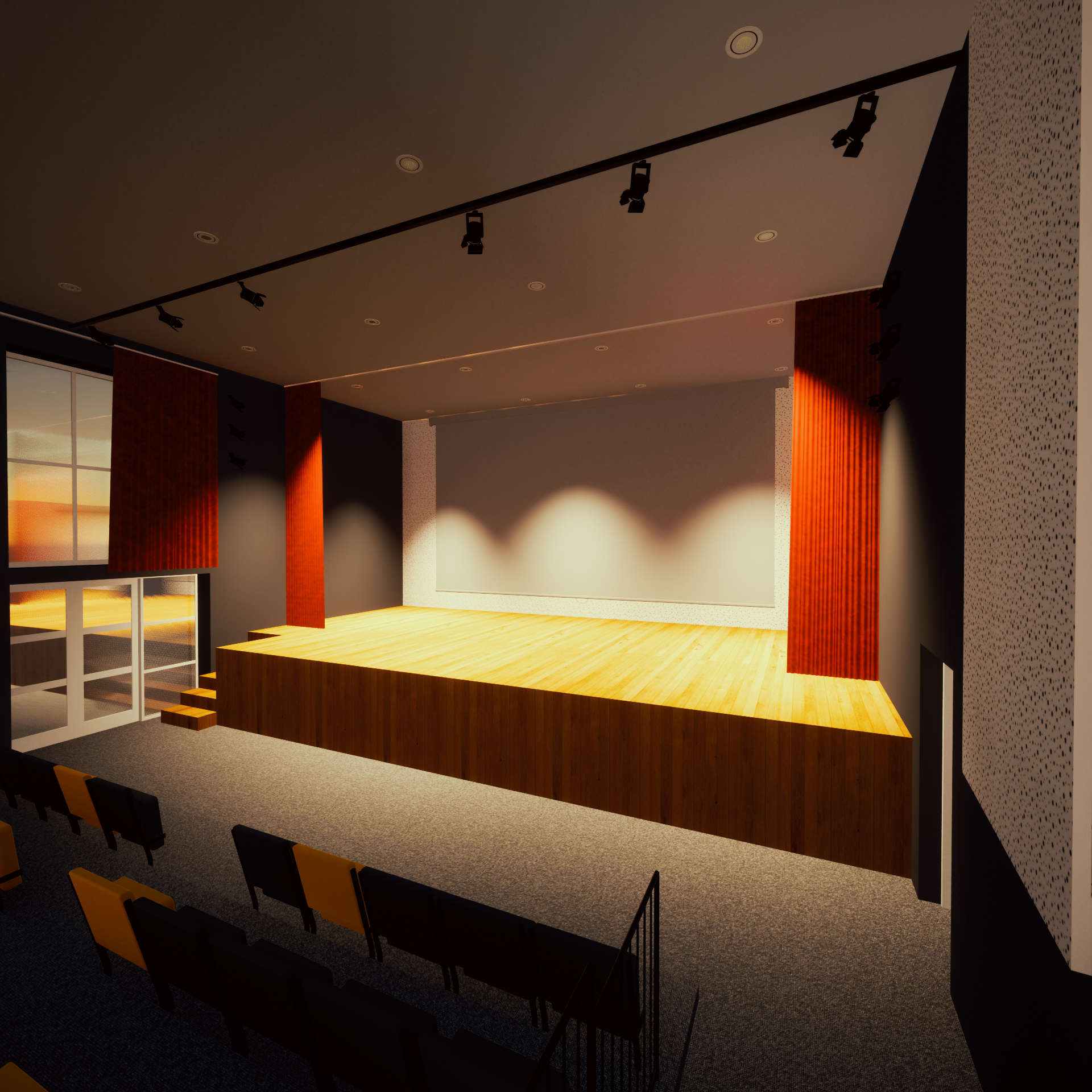 Uređenje interijera kino dvorane.