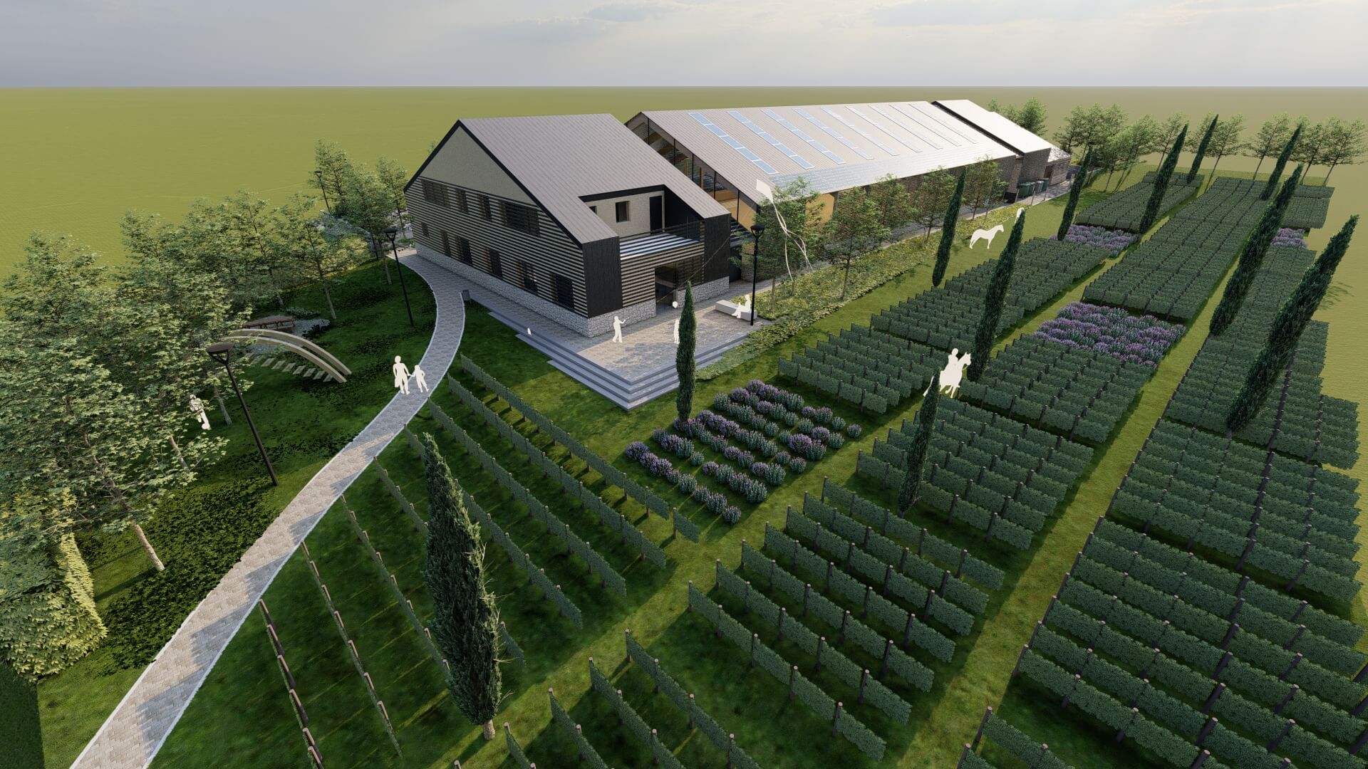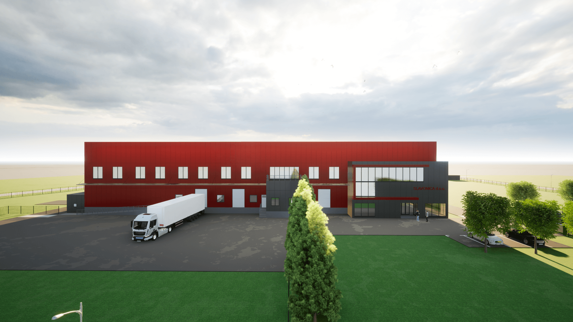 Proizvodna zgrada dizajnirana za preradu mesa kombinira funkcionalan proizvodni prostor, spremišta, garaže i uređaj za pročišćavanje. Projekt osigurava učinkovitu organizaciju rada, higijenu i sigurnost, pružajući optimalne uvjete za proizvodni proces.