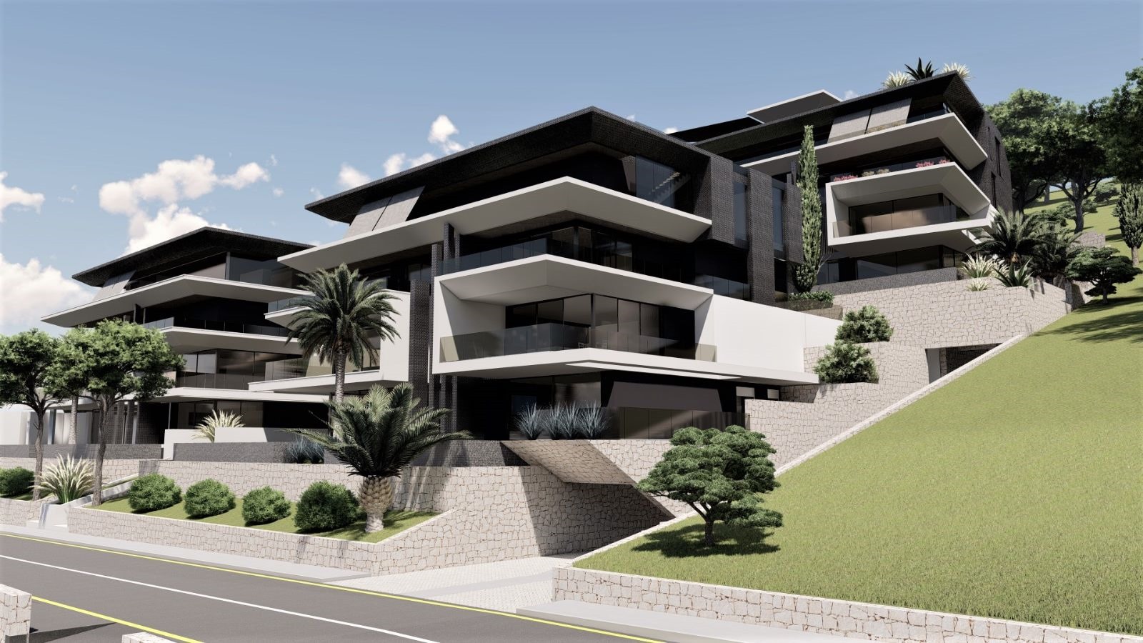 Dvije stambeno–poslovne zgrade nude savršen spoj modernog dizajna i funkcionalnosti. S ukupno 6 stanova i 9 apartmana, velikim terasama i promišljenim rasporedom, svaki prostor pruža udobnost, svjetlost i praktičnost, savršeno uklopljen u prirodni teren.